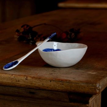 La collection est en porcelaine fabriquée à la main dans mon atelier près de Paris. Elle apportera une touche délicate à votre table et la rendra unique.